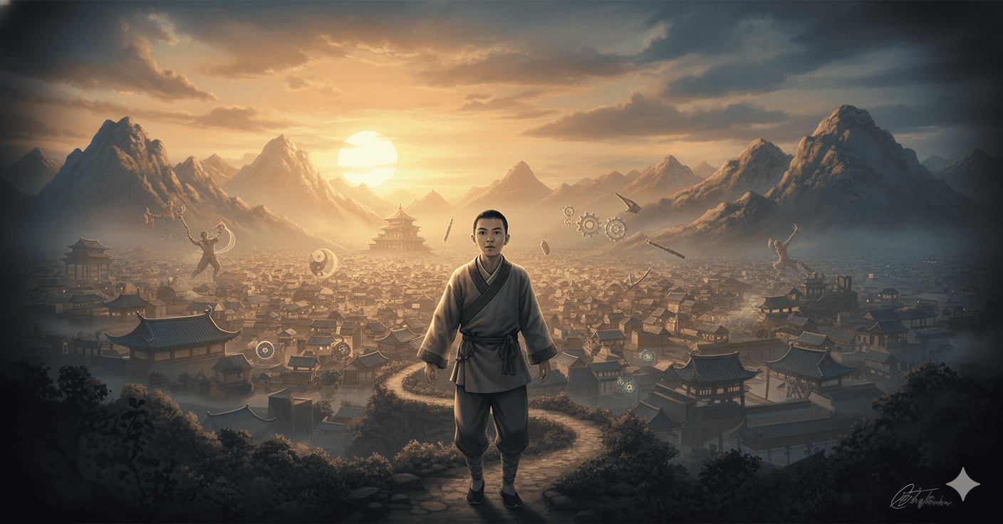 《道士下山》為徐皓峰所著,故事從一名年輕道士何安下被逐出山門開始。他帶著對世俗的全然陌生與一身尚未參透的道家修行,下山入世,先後踏入武林、醫道、情義與欲望交織的人間江湖。小說表面寫的是武術與門派,實際鋪陳的卻是「修行之人如何面對紅塵」這個老而不舊的命題。